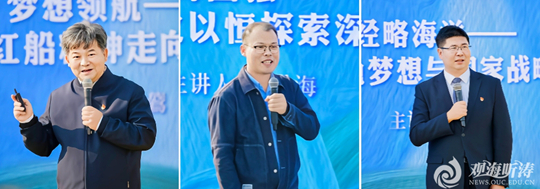 黨課以“啟航—深藍—礪劍—融匯—揚帆”為清晰主線,層層遞進傳遞精神力量。黨委常委、統(tǒng)戰(zhàn)部部長陳鷟圍繞“紅船精神與藍色夢想”授課,從開天辟地的首創(chuàng)精神切入,闡釋“紅船精神”作為海洋強國建設的精神航標,解讀其與海大人“浩海求索”傳統(tǒng)的內在契合;化學化工學院教授張洪海以西北太平洋觀測體系構建為線索,講述科研人員接續(xù)奮斗、深耕遠海觀測的艱辛歷程,詮釋“持之以恒、久久為功”的科學家精神;文科處處長董躍聚焦海洋強國建設,解析國家經(jīng)略海洋部署與學校使命,引導師生將個人追求融入國家海洋事業(yè)。