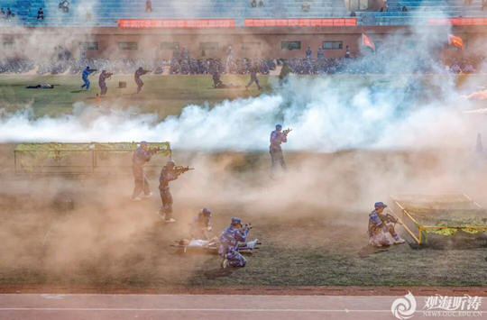 總結會上,學生口號嘹亮、步伐整齊、英姿颯爽、目光堅定,先后展演了刺殺操、格斗基礎、戰術動作等項目,充分展現了新時代海大學子銳意進取、追求卓越、奮楫篤行的青春風采。