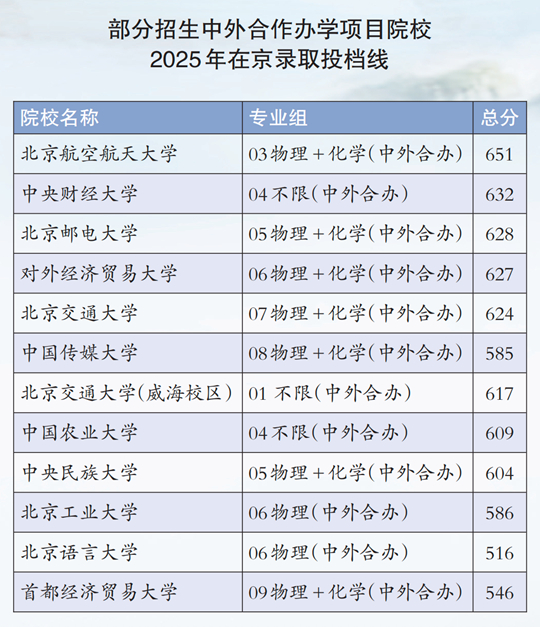 “中外合作辦學項目”是指中外合作辦學雙方不設立專門的教育機構,而是直接在某個大學的某一學科或某個專業直接開展合作。例如,北京郵電大學與英國倫敦瑪麗女王大學于2004年合作設立電信工程及管理、電子商務及法律學士學位聯合培養項目,后于2011年增設物聯網工程學士學位聯合培養項目;北京林業大學與加拿大不列顛哥倫比亞大學合辦的生物技術、木材科學與工程專業。高考分數沒有達到目標院校,但又非常向往該所學校的考生可以選擇報考中外合作辦學項目,這樣考生既可以在目標院校就讀,又可以享受到國際教育資源,對未來出國深造也有幫助。