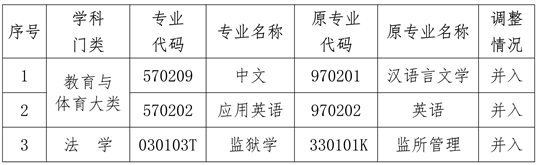 根據《全國高等教育自學考試指導委員會關于停考<高等學歷繼續教育補充目錄>有關專業的通知》(考委〔2022〕1號)和教育部辦公廳《關于做好2025年度高等學歷繼續教育專業和校外教學點設置與管理工作的通知》(教職成廳函 〔2025〕3 號)規定,現對停考的漢語言文學(970201)(專科)、英語(970202)(專科)、監所管理(專業代碼:330101K)(專升本)三個自學考試專業進行如下調整: