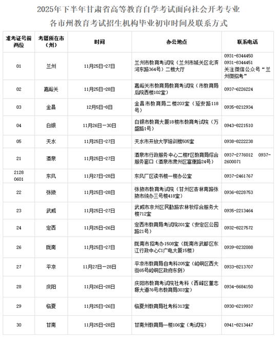 | 2025年下半年甘肅省高等教育自學考試面向社會開考專業畢業初審公告 |