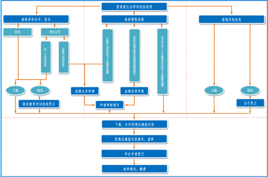 經查詢核對課程成績無誤、僅身份證號或姓名有誤的考生,請于12月2日8:30—4日16:30期間,聯系當地教育考試機構更正身份證號或姓名;其他信息(尤其是手機號碼)有誤或缺失的考生,自行在浙江自學考試信息網更正或補全。